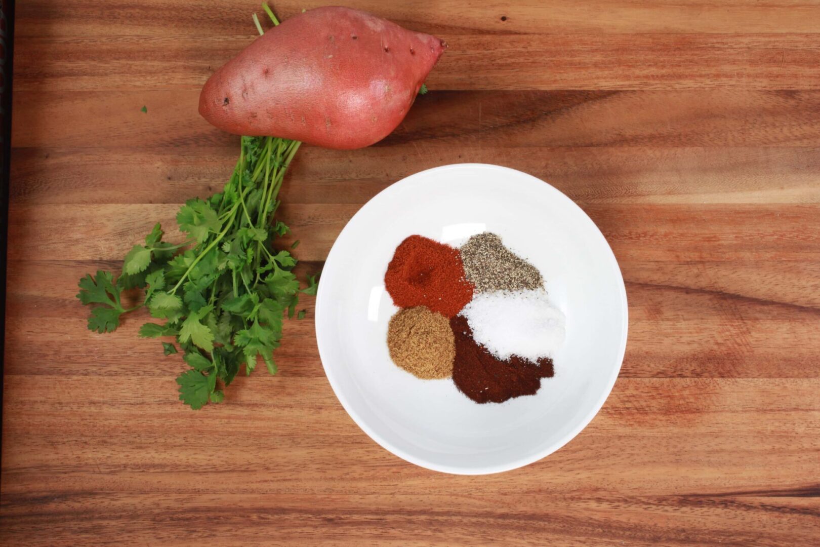 In a small bowl, mix the cumin, ancho powder, smoked paprika, salt and pepper