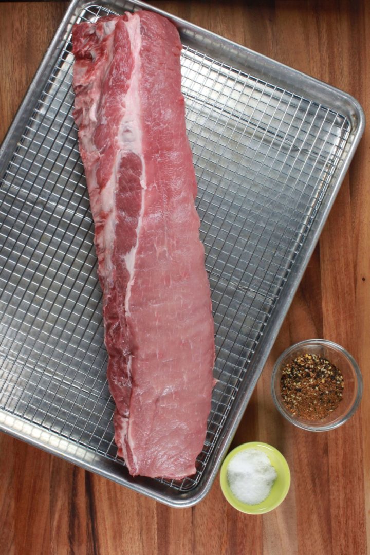 Remove the thin membrane on the back of the ribs and season both sides with salt, pepper and ¼ cup of togarashi seasoning.