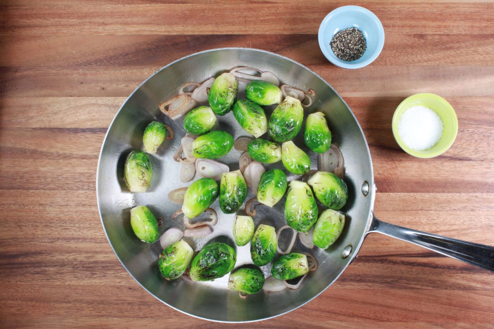 Slice shallots to form rings and sauté for 3-4 minutes in a pan with olive oil. Add PuraVida Fire Roasted Brussels Sprouts and heat for 5 minutes.