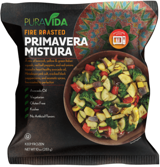 A mix of broccoli, yellow & green Italian squash, red bell pepper & red onion tossed in heart healthy avocado oil, Himalayan pink salt, cracked black peppercorns and aromatic spices, fire roasted to perfection.
